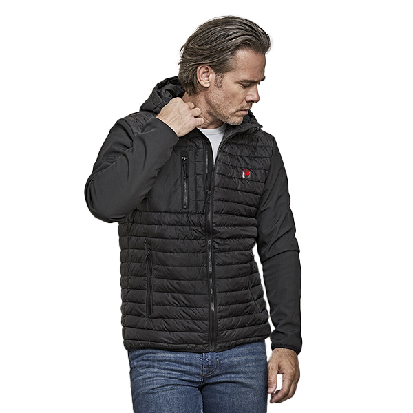 LW-3364Our cool Hooded Crossover jacket features stunning detailing such as a chest pocket with a zipper and an adjustable hood, making it both practical and fashionable. For a sporty look we have used a combination of a light polyester 300T with padding and softshell. The jacket has an adjustable hem, elastic cuffs, two side pockets, and an inner pocket.